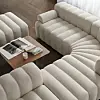 Sofa Studio is voorbereid op uitbreiding: de geribbelde modules zijn eindeloos te combineren en aan te vullen. Van een hoekdeel, poef tot armsteun, je maakt de jarenzeventigbank zo lang, breed of rond als je zelf wilt. Of je nu alleen ligt, of met je hele vriendengroep, dankzij Studio's vrolijke vetrolletjes heb je altijd iemand om te knuffelen.