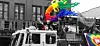 Dykes on bikes De bonte stoet trok langs Lower Broadway. Ze werden geleid door de Dykes on Bikes, een lesbische motorclub. Ze gingen met een vertraging van veertig minuten van start, omdat er een hevig onweer losbarstte. Even dreigde de Pride Parade niet door te gaan, maar gelukkig trok de storm snel over.