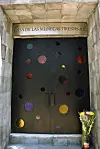 Bij de ingang kopen we een bosje bloemen en eenmaal binnen vraagt Rojo aan een paar mensen de weg. De begraafplaats is gigantisch, maar het trans mausoleum weet ieder van hen precies te vinden. De bovengrondse grafkelder is opgetrokken uit dikke rode bakstenen. Door de ronde glas-in-loodraampjes in de dikke stalen deuren werp ik een blik op de binnenkant. In het midden van de ruimte, tussen twee wanden vol kluisjes die plaats bieden aan de as van ongeveer 150 vrouwen, staat een altaar met daarop een geïllustreerd portret van Paola Buenrostro. Haar lichaam was het eerste dat in dit mausoleum werd bijgezet. Deze rustplaats is bedoeld voor zowel trans vrouwen die stierven door hatecrimes als door natuurlijke doodsoorzaken. In sommige gevallen werden hun lichamen niet door familie opgehaald. “Het mausoleum biedt hun een waardige laatste rustplek”, vertelt Rojo.