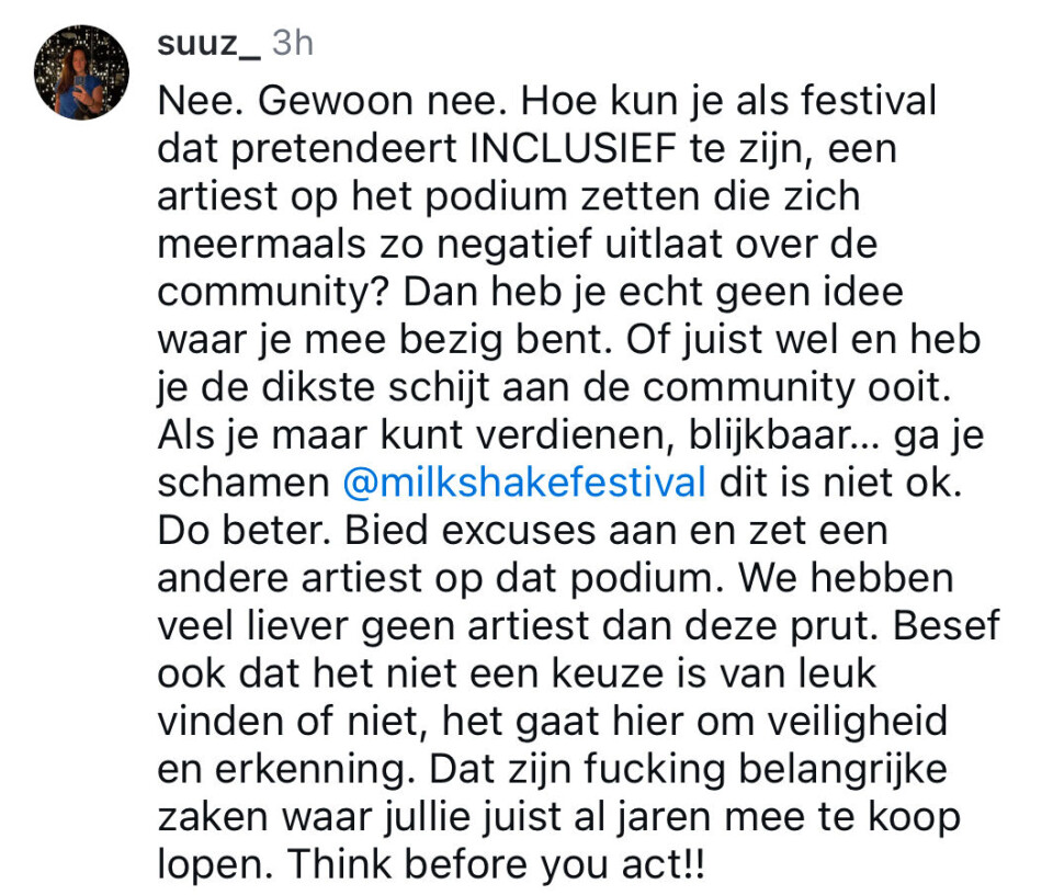 De reacties onder de aankondiging op Instagram zijn niet mals: