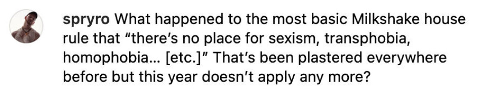 In een (inmiddels verwijderde) reactie reageerde Milkshake met het volgende: