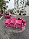 Het is grotendeels een voetgangersgebied, en de straten zijn hier en daar opgeleukt door knalroze stoeltjes. Ook daar heeft mijn gids een leuk weetje over: “Die komen uit het Olympisch stadion, dat vorig jaar werd gerenoveerd!” De stoeltjes werden grondig schoongemaakt en roze geverfd. “Ideaal, want deze stoeltjes zijn erg weerbaar: ze gaan niet zo snel stuk en kunnen goed tegen de verschillende weersomstandigheden.”
