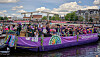Mensen met verstandelijke beperking varen mee op eigen boot met Canal Parade Op 2 augustus door de grachten van Amsterdam